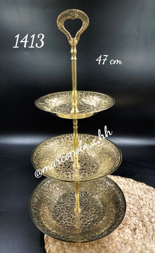 شیرینیخوری سه طبقه برنجی هندی با طرح گل – ترکیبی از هنر و ظرافت سنتی