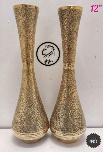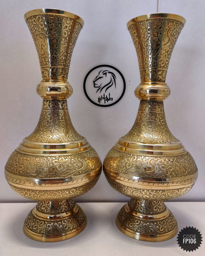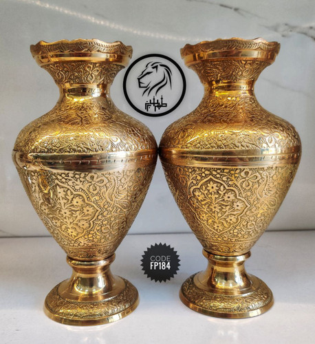 گلدان برنجی لب هلالی حکاکی شده | دکوراسیون لوکس و مقاوم