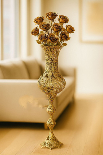 گلدان خمره ای تمام توری برنجی