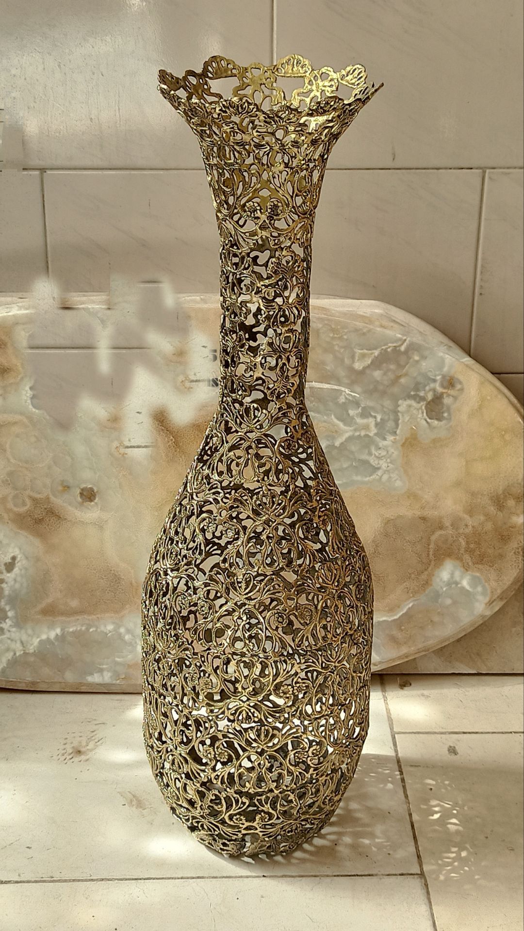 گلدان خمره ای تمام توری برنجی